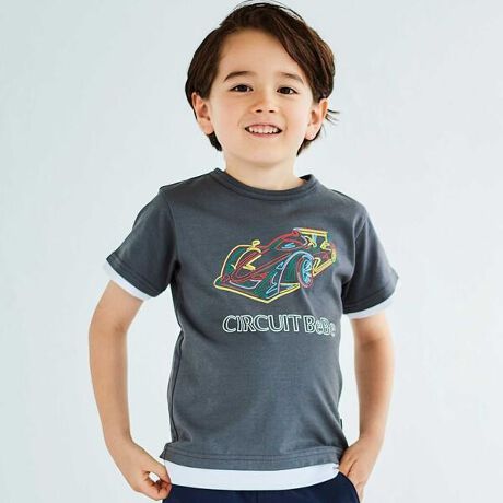 レーシングカー発泡プリントレイヤード風天竺半袖Tシャツ(90~160cm)