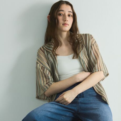 夏にはグラフィックTシャツにあわせて、シアー感を活かした涼し気なレイヤードコーディネートが楽しめます。