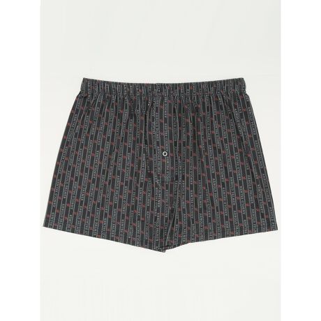 前開きのニットトランクスです。ロゴプリントの総柄デザインです。ウエストはゴムが直接肌に触れない仕様、ゆったりサイズ設定で締めつけ感が苦手な方におすすめ。