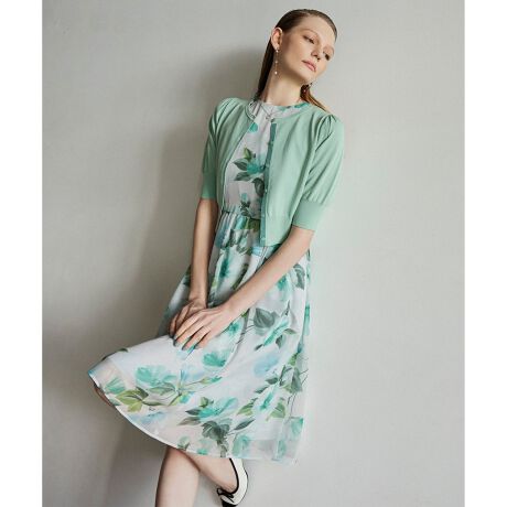 鮮やかなピオニーの花が全面に咲き誇り、春の訪れを感じさせるシフォン素材のドレスです。柔らかなシフォンが風になびくたびに軽やかな印象を与え、女性らしさを引き立てます。ふんわりとしたシルエットは優雅で、どんなシーンにもぴったり。デイリーやお出かけに最適な一枚で、着るだけでコーディネートが春らしく、華やかに演出してくれます。