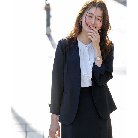 快適な着心地、綺麗なシルエット、お手入れ簡単!三拍子揃ったスマートビューティストレッチシリーズ女性らしいすっきり綺麗なシルエットのノーカラージャケット