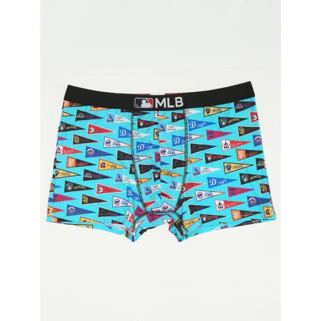 前閉じのボクサーパンツです。MLB球団をフィーチャーした総柄デザインです。股上が浅めで、ピタッとした穿き心地です。