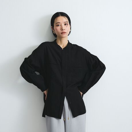 ー落ち感のあるきれい見えブラウスは大きめの胸ポケットでハンサムな印象にー
