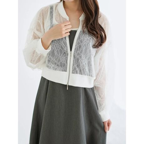 レースとチュールを重ねた繊細なデザインがフェミニンさを纏うブルゾン