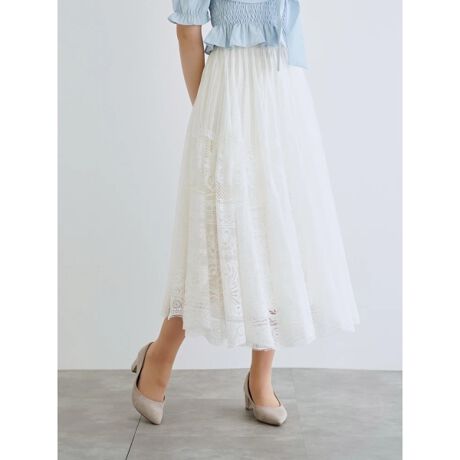 繊細なレースの透け感がエレガントな雰囲気を演出するロングスカート