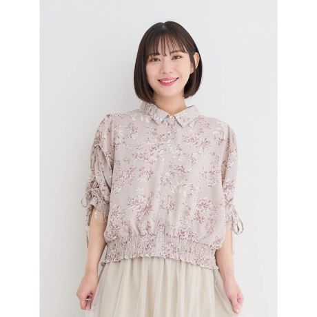 花柄袖ドロストリボンブラウス