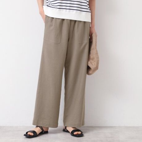 【セットアップ可能・ウエストゴム・洗える】リネンブレンドポケット付パンツ(S〜L)