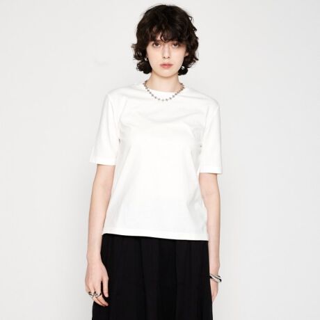・シンプルでベーシックなシルエットが特徴のTシャツ。どんなスタイリングにもフィット。