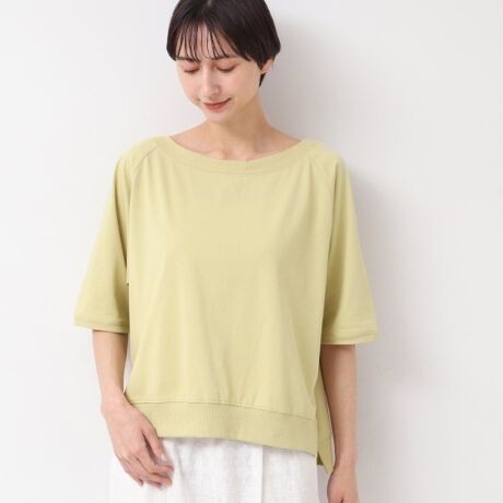【接触冷感・UV・洗える】裾リブスリット五分袖カットソー