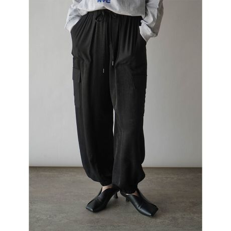 ウエストや裾口はゴムになっているためリラクシーな履き心地。