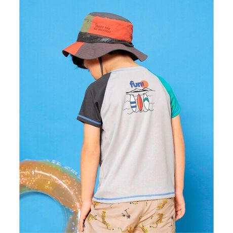 夏らしいバックロゴが特徴の半袖ラッシュガードは