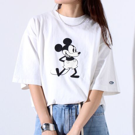 【MICKEY×DISCUS ATHLETIC】コラボ プリント 半袖 クルーネックTシャツ