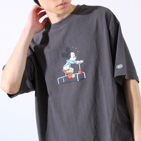 【MICKEY×DISCUS ATHLETIC】コラボ プリント 半袖 クルーネックTシャツ