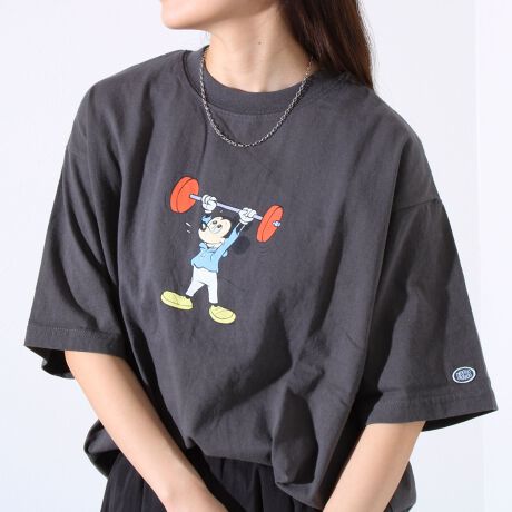 【MICKEY×DISCUS ATHLETIC】コラボ プリント 半袖 クルーネックTシャツ