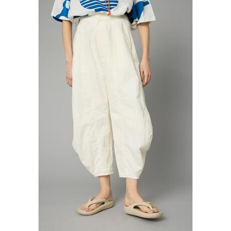 ナイロン素材で撥水機能がうれしいコクーンパンツ。クラシカルな表情にマットな色調、コットンライクな肌触りが特徴のナイロンタフタを使用したアイテムで、撥水機能を持ち合わせています。カジュアル感のあるアイテムを組み合わせるスタイリングがオススメ。シルエットを拾わないコクーンシルエットで、ウエストゴム仕様なのででリラックスした履き心地が嬉しいデザインとなっています。コクーンヘムタフタパンツ[注意事項] ※画像の商品はサンプルです。実際の商品と仕様、加工が若干異なる場合があります。 ※画像の商品は光の照射や角度、お使いのモニター環境により、実物と色味が異なる場合がございます。 ※着用、お取り扱いの際は、アテンションタグをご確認ください。