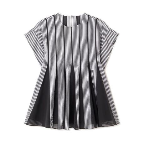 ストライプ生地とシアー素材を組み合わせたさわやかなブラウスです。