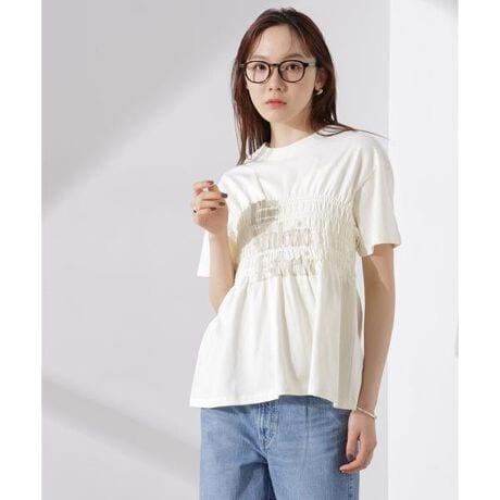 シャーリングデザインが華やか見えのきれいめTシャツ