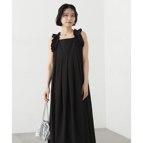 裾まわりをふんだんに取っているので、涼しく着ていただけるサマードレスです。首まわりの大きいラッフルフリルが退屈しないポイント。足元はスニーカー合わせでカジュアルダウンしたり、華奢なサンダル合わせでフェミニンカジュアルにも楽しめます。<素材>さらりと軽く落ち感のある合繊素材を使用しています。<詳細>仕様・左ファスナー透け感・なし / 光沢・なし / 伸縮性・なし生地の厚さ・普通※モデルの着用画像の場合、光の当たり具合により、実際の色味と異なって見えることがございます。色味は、商品単体の画像をご参照ください。