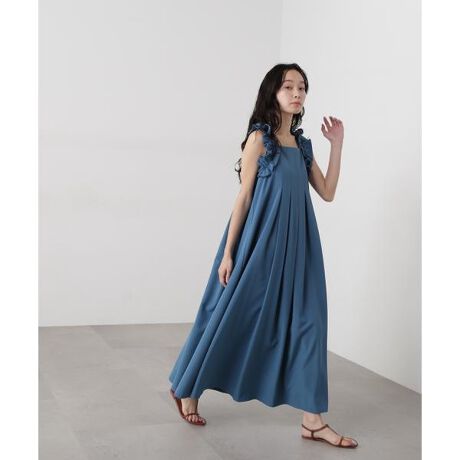 裾まわりをふんだんに取っているので、涼しく着ていただけるサマードレスです。首まわりの大きいラッフルフリルが退屈しないポイント。足元はスニーカー合わせでカジュアルダウンしたり、華奢なサンダル合わせでフェミニンカジュアルにも楽しめます。<素材>さらりと軽く落ち感のある合繊素材を使用しています。<詳細>仕様・左ファスナー透け感・なし / 光沢・なし / 伸縮性・なし生地の厚さ・普通※モデルの着用画像の場合、光の当たり具合により、実際の色味と異なって見えることがございます。色味は、商品単体の画像をご参照ください。