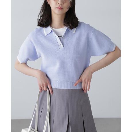 〔fabric&design〕綿タッチの程よくカラッとした糸で鹿の子編みにしたポロニット。襟と袖口に配色ラインを施しスポーティな印象をプラス。程よい身頃感とパフスリーブで袖口と裾リブでマークし丸みのあるかわいいシルエットに。艶消しのメタルボタンがアクセント。〔stylinig〕インコーデもアウトコーデもしやすいコンパクトな丈感で様々なボトムに合わせていただけます。カットソーだとカジュアルすぎるという方におすすめ!