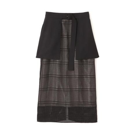 レースタイトスカートの上に、無地のベルト付きオーバースカートを重ねたデザイン。