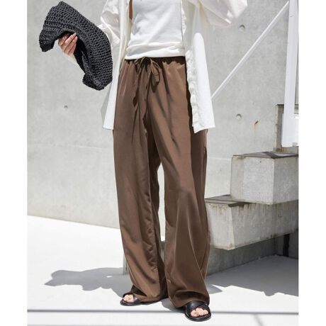 ・裏地なしで真夏まで長く活躍するような大人カジュアルなスタイリングには欠かせないきれい見え楽ちんパンツ。