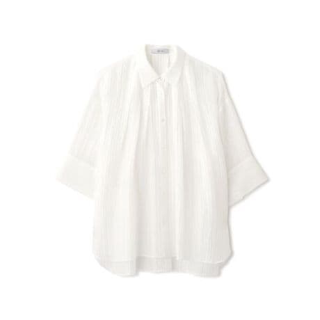 テンセルナイロンの透け感のある合繊素材にワッシャー加工を施したデザインブラウスです。