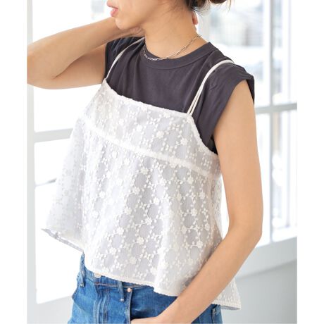 繊細な刺繍レースが涼しげな印象のキャミソール。