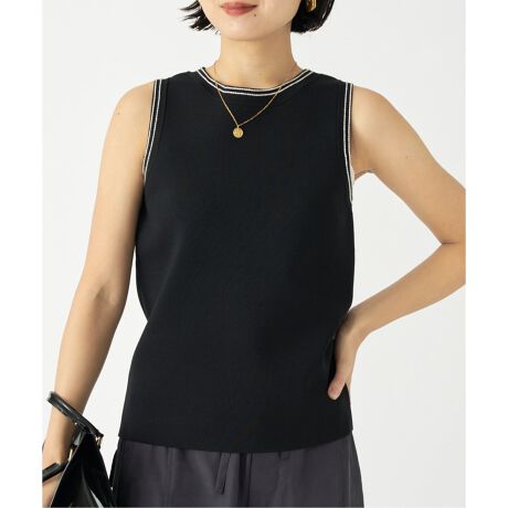 シンプルなデザインに配色ステッチが映える、ノースリーブニット。