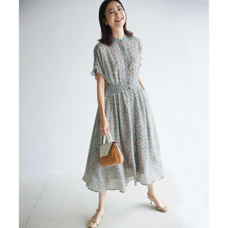 小さな花柄使いが女性らしい大人のプリントワンピース