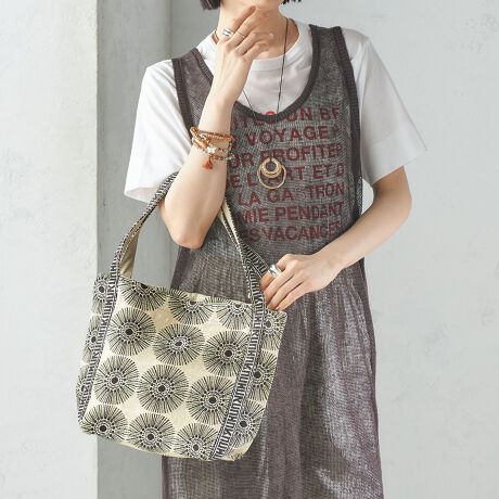 肩掛けしやすく、バッグの中身も見やすいハンドル位置のバッグです。