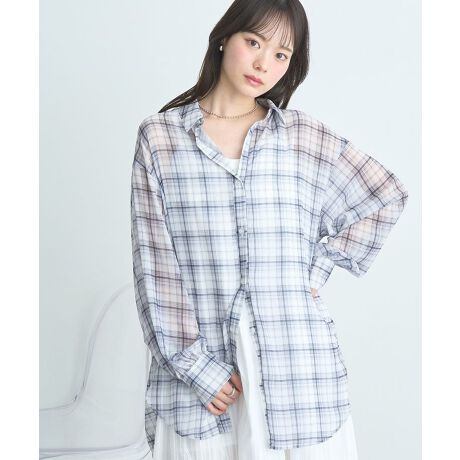 コーディネートの主役にぴったりなチェック柄シアーシャツ。いつものコーディネートに1枚プラスするだけでトレンドのこなれ感を演出します。さらりとした軽やかなポリエステル素材が着心地良く、これからの季節にも重宝すること間違いなし。中にインナーを入れてカジュアルに、腰に巻いたスタイルもおしゃれに決まる今季おすすめのアイテムです。透け感[あり]
