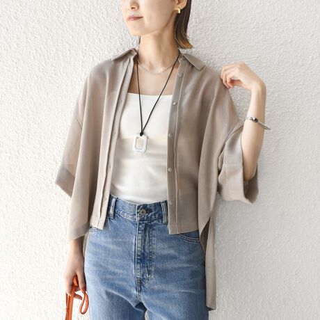 透け感が控えめなシアーシャツは、Tシャツやタンクトップの上にさらっと羽織るだけで、こなれたレイヤードスタイルが完成。