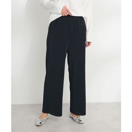 シャープな縦ラインを演出する細プリーツ加工でスタイルアップ効果にも期待できます。