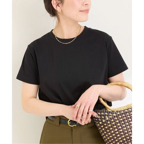 すっきりとした見え感が幅広いスタイリングに合わせやすいシンプルな無地TEE。
