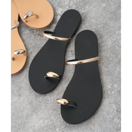 フラットなソールがリラクシーな雰囲気に、サムリングのメタルパーツが足元をより華やかでラグジュアリーな印象に見せてくれます。