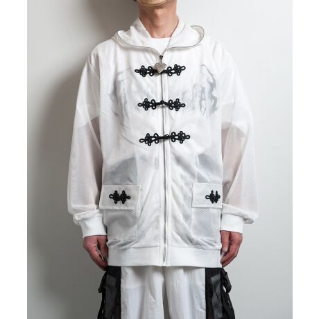 BACKSTAGEPASS(バックステージパス)のTRIPLET-CHINA(トリプレットーチャイナ)チャイナバックル メッシュ オーバーサイズ パーカーです。