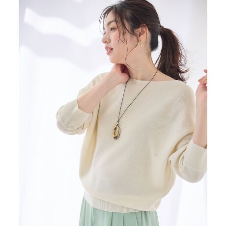 ・ドルマンスリーブが二の腕周りをカバーしてくれる・襟元を綺麗に見せてくれるボートネックが上品な印象・カラーバリエーション豊富な8色展開