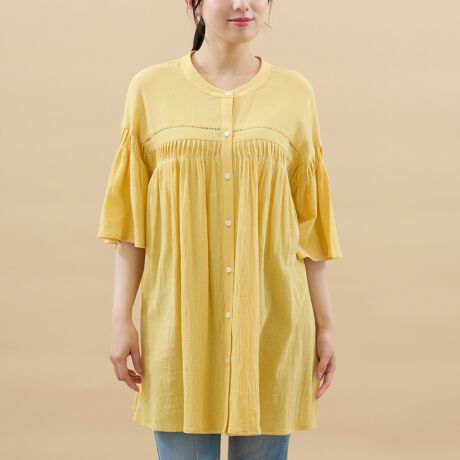 ぜひこのピンタックフレアー袖チュニックをワードローブに加え、快適でおしゃれな夏のコーディネートを楽しんでみてください!