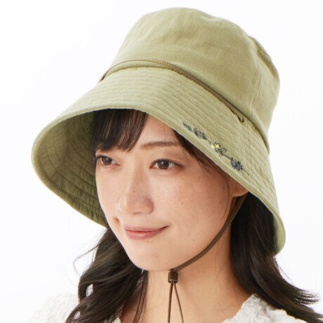 サイドウェイフラワー刺繍ワッシャーダウンバケットハット