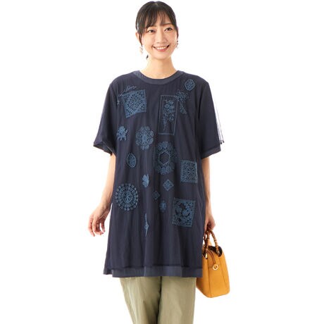 レーヨンコットンローン×チュール レースフレーム刺繍チュニックブラウス
