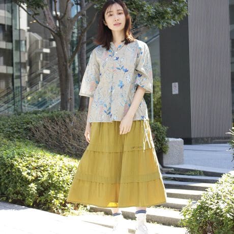 サイドウェイフラワー刺繍セルロースフィブリルブロードティアードスカート