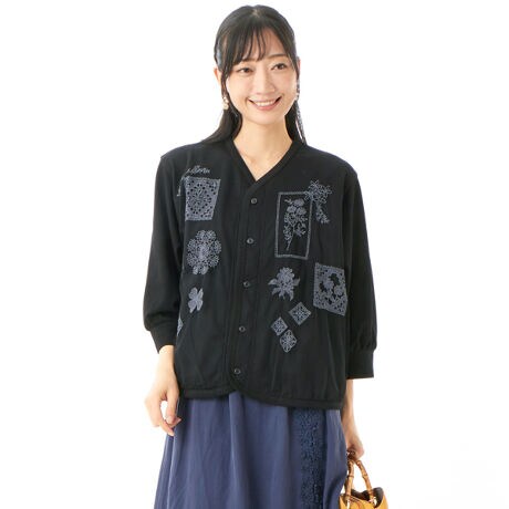 ミニ裏毛×チュールレースフレーム刺繍カーディガン