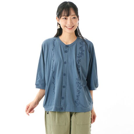 SZ強撚天竺フラワーロンド単色刺繍ドルマンカーディガン