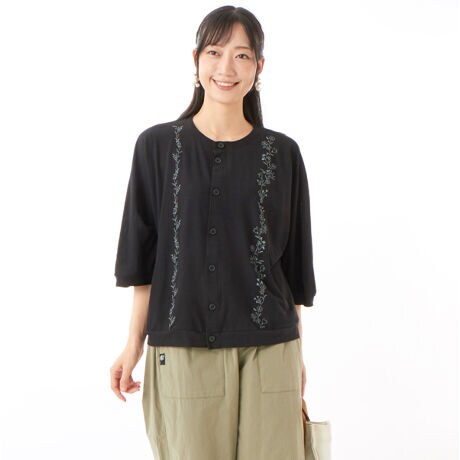 SZ強撚天竺フラワーロンド単色刺繍ドルマンカーディガン