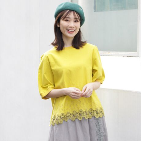 ミニ裏毛サークルスカラップケミカルレースTシャツ