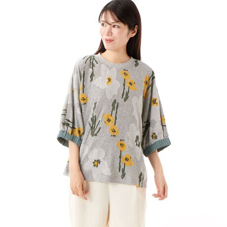 32/-スターフラワーカットジャカードドルマンカットソー