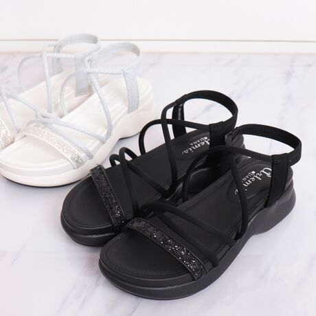 ・つま先にキラッと輝くグリッターをオンした厚底スポーツサンダル。