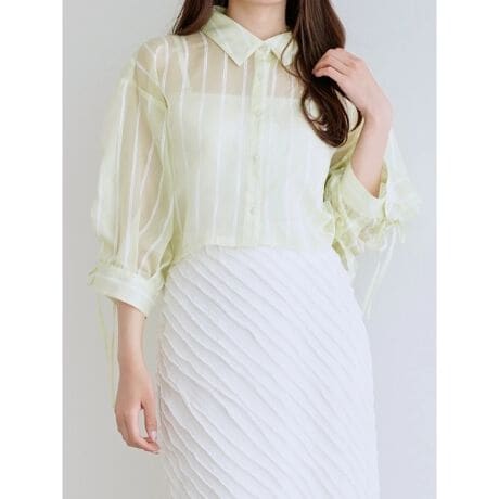 ・ストライプ柄のシアー生地で、スタイリングも爽やかに演出してくれます。