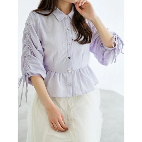 絞ることで変化の生まれる袖シルエットと裾のペプラムデザインがフェミニンな印象を演出してくれます。